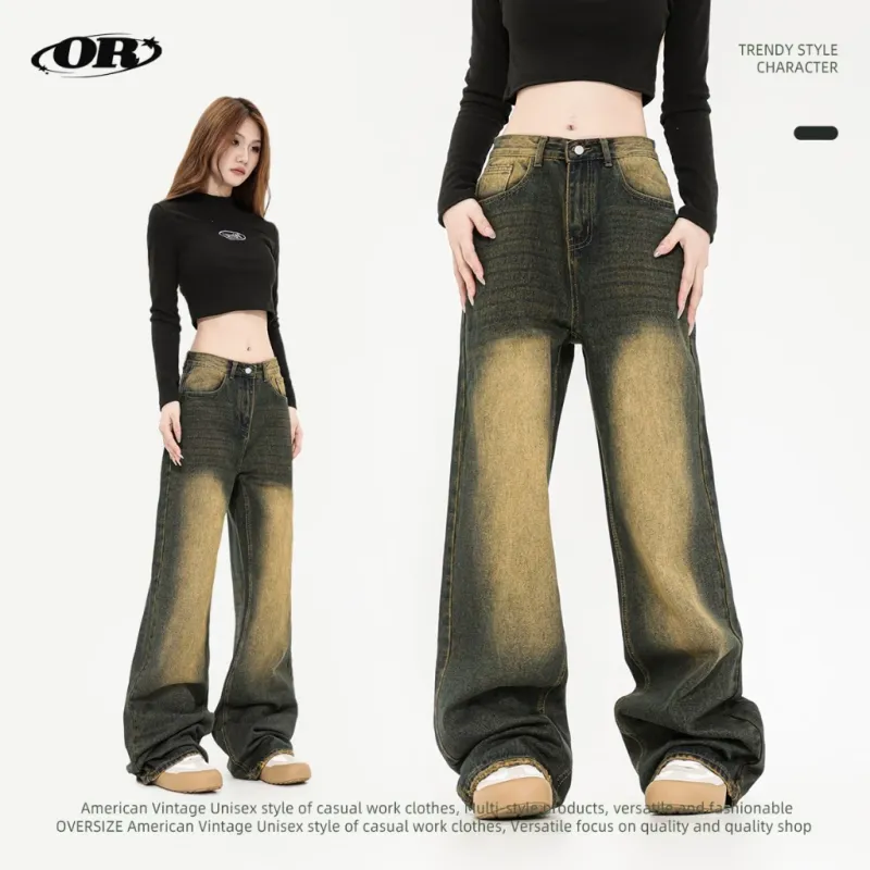 Thiết kế quần jean ống đứng cổ điển, kiểu wash nhẹ thời thượng, thích hợp cho phong cách trẻ trung và hiện đại.